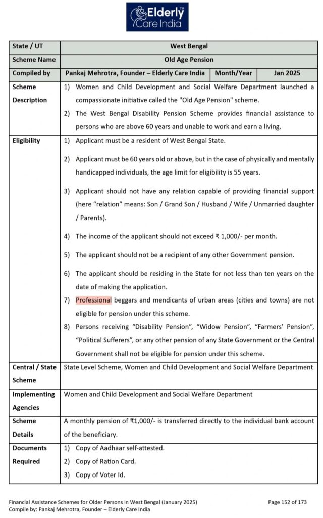 As per the "Old Age Pension" scheme of West Bengal, professional beggars are excluded from taking financial support from this particular scheme, which sounded rather strange to me (not sure if they qualify under any other schemes).